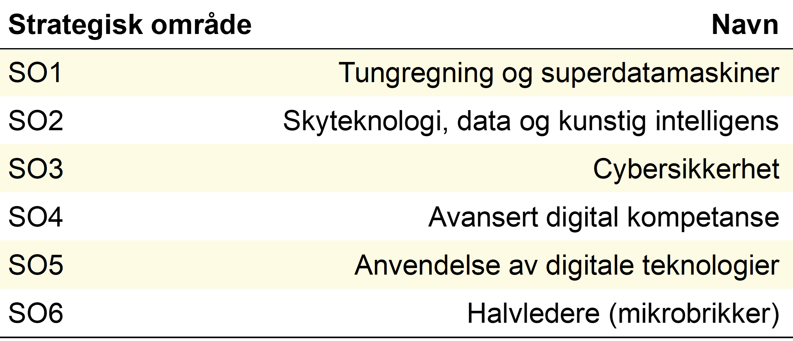 - rimeligere og mer forutsigbar tilgang til sentral digital infrastruktur – som superdatamaskiner, tungregningskapasitet og ulike test- og utviklingsmiljøer